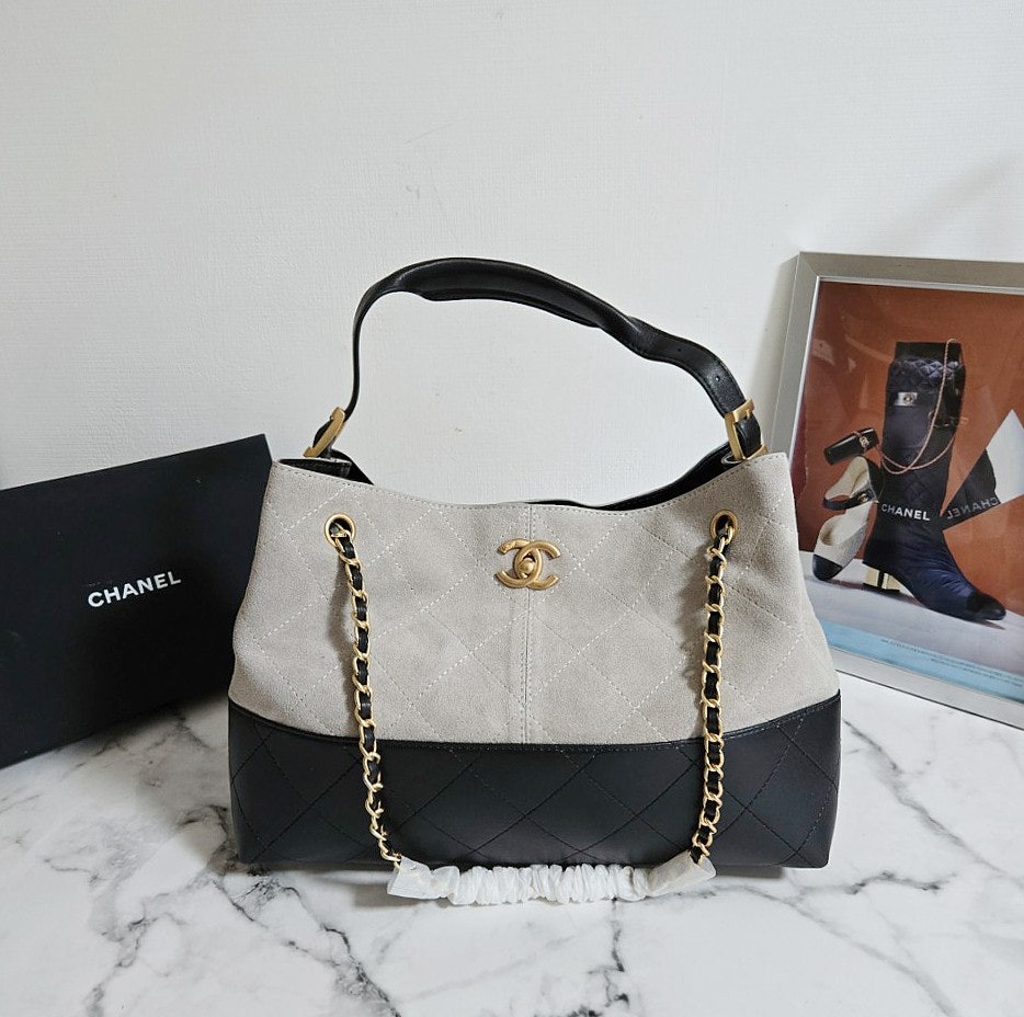 샤넬 25A 공방 스웨이드 투톤 쇼퍼 호보백 그레이