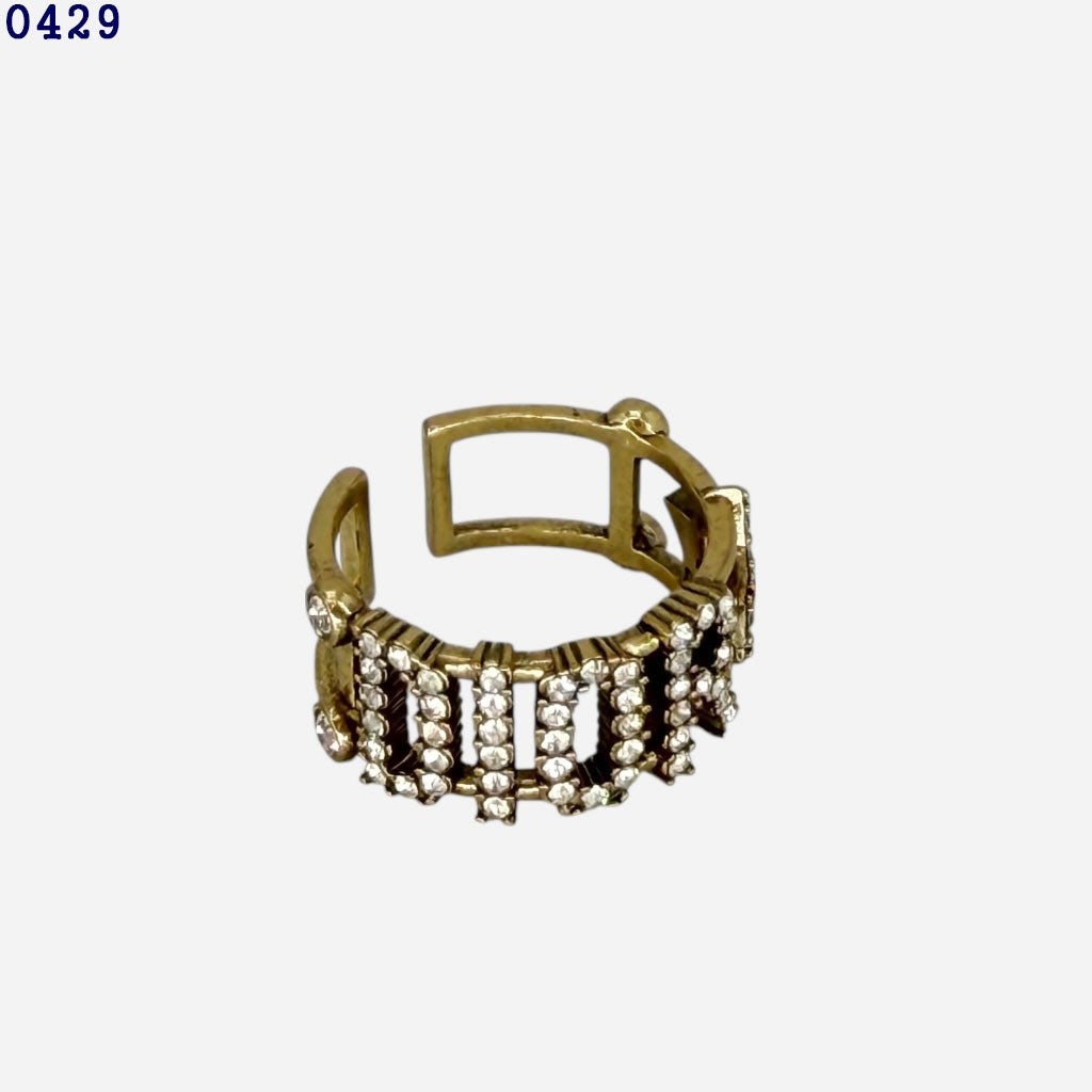 디올 앤틱 골드 & 크리스탈 링 반지